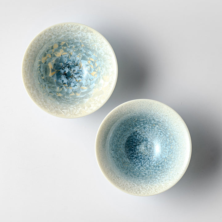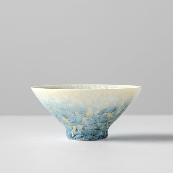 The Glacier Bloom Crystal Teacup captures the serene beauty of crystalline porcelain glaze. Its gradient from icy blue to creamy white evokes the image of blooming ice flowers on a glacier. Each teacup is uniquely crafted and high-fired to reveal natural crystal patterns—no two are the same. Elegant, refined, and soothing, it’s perfect for savoring tea with calm and grace.