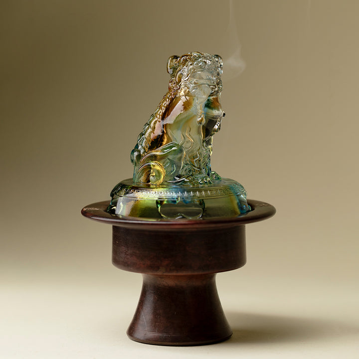 Guardian Lion Glass Incense Burner